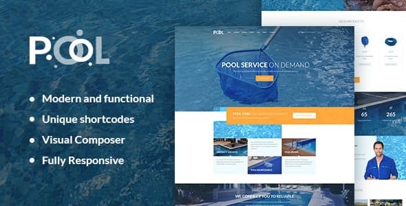 Pool Services WordPress theme has stylish, fresh and functional design. It is perfectly suitable for Pool Maintenance, cleaning & repair services website. With lots of customizable features you can create both trendy and easy-operated website for your Repair and Maintenance Business. Also the theme can be interesting for individual professional technician, repairer, handyman team or any construction related business